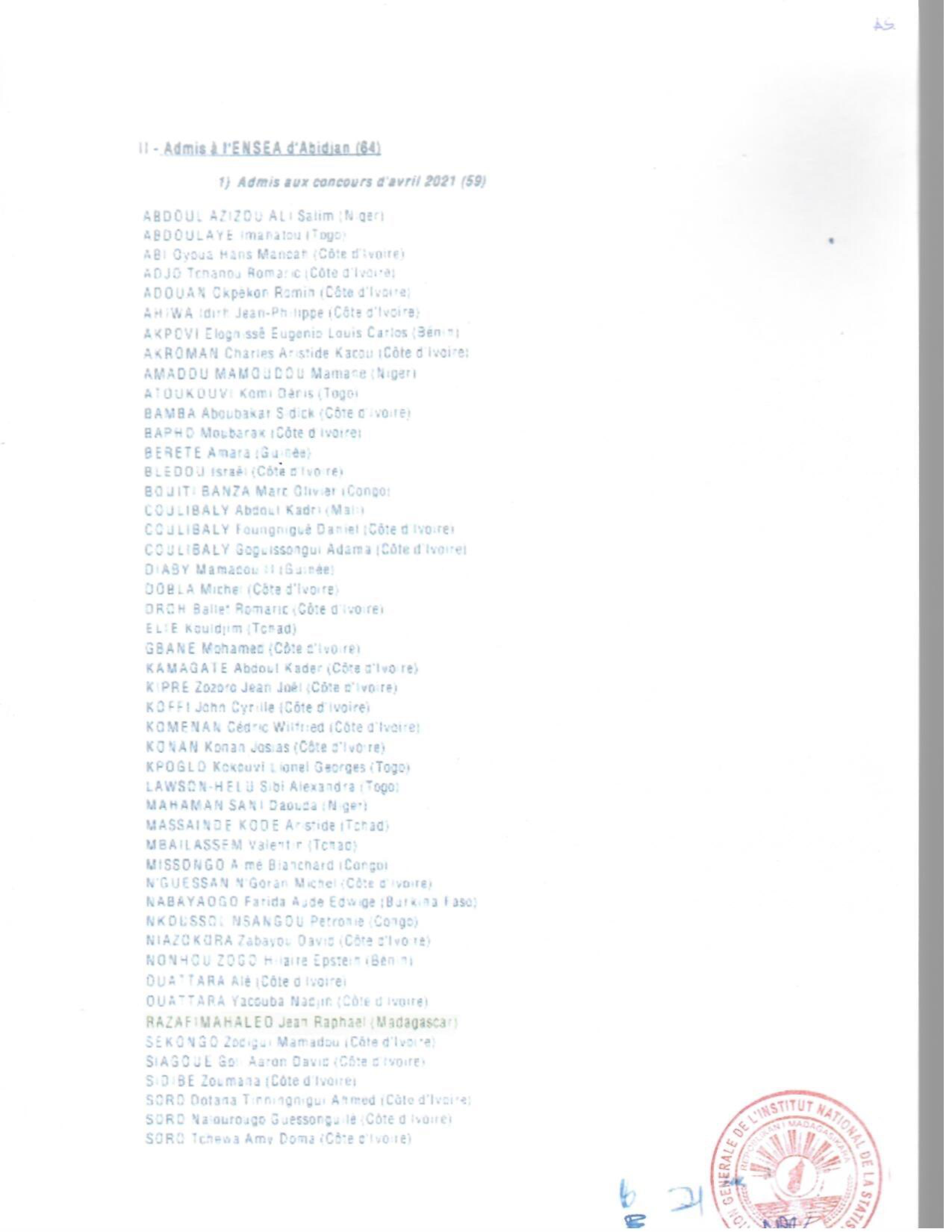 INSTAT : Résultats des concours pour les candidatures en IFORD, ISE et AS La liste des candidats admis au concours pour le recrutement d' Élèves en Master Professionnel en Démographie, niveau I à l'IFORD, session de mai 2021 (i), d’ Élèves Ingénieurs Statisticiens Économistes (ISE) cycle long pour l'année scolaire 2021-2022 (ii) et d’ Élèves Analystes Statisticiens (AS) pour l'année scolaire 2021-2022 (iii), est publiée. Toutes nos félicitations aux candidats admis.